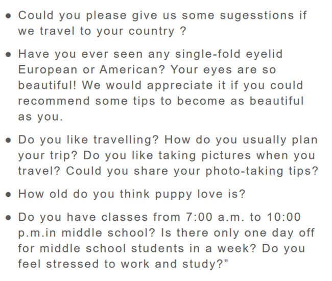 此次英语口语实习作为英语专业教学体系中高年级不可或缺的实践环节,对学生的全方位专业能力发展有检验和促进作用。学生们与外国友人进行口语交流时,能耐心主动地学习,积极提出自己的见解,拓宽了自身的眼界,提高了跨文化交际意识和口语交流水平,也锻炼了和陌生外国友人交谈的胆量。