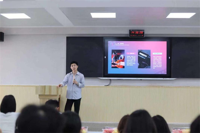本次校园宣讲会,由湖南替客拓客数字科技有限公司主办,中南林业科技大学涉外学院电子商务协会协办。主讲导师为湖南替客拓客公司国内外抖音运营导师李德俊。李俊德老师有着四年短视频平台起号实操经验、运营过十余个品牌官方直播间,帮助超千人新手学员在抖音平台实现。他为大家带来了一场精彩的直播干货分享:从“抖音直播底层逻辑,算法”、“人货场匹配”、“直播间冷启动方法”、“数据如何突破递增”四个方面与同学们分享直播带货相关经验。