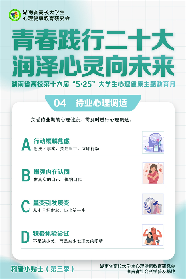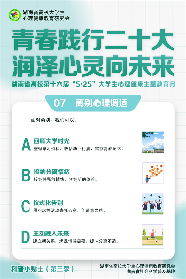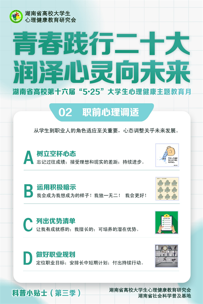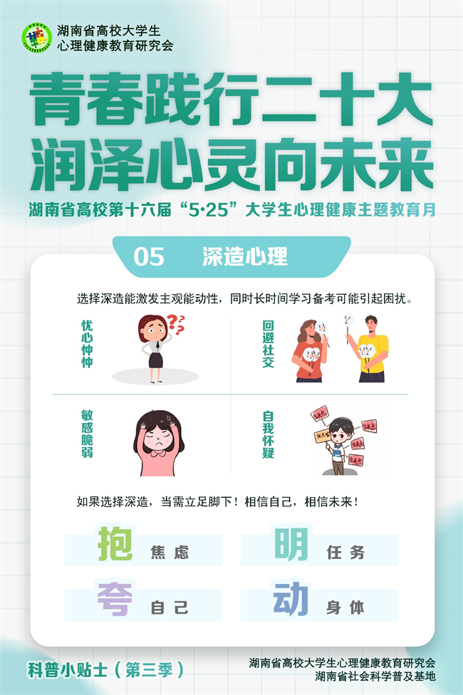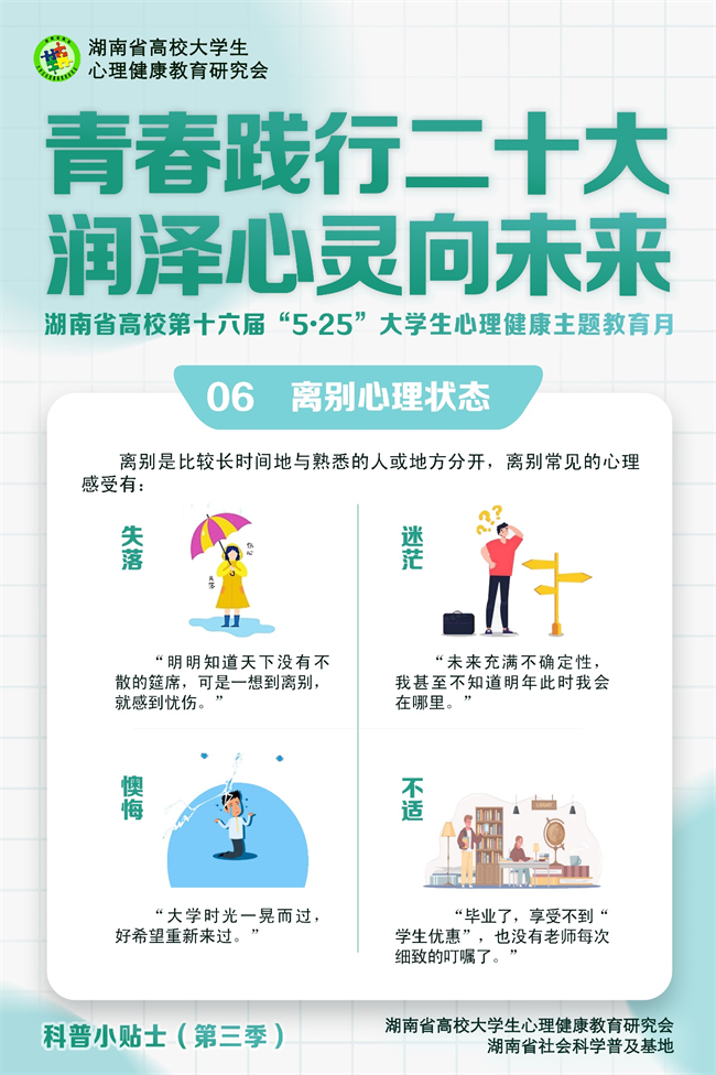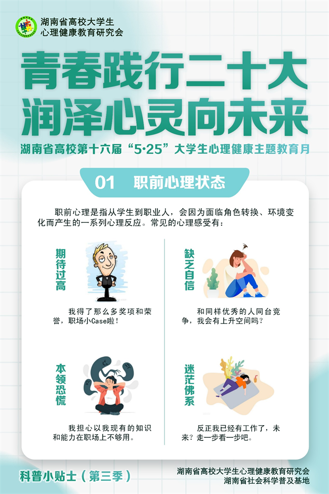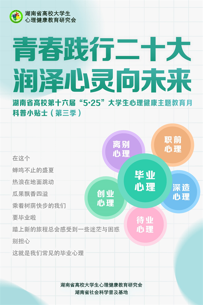 湖南省高校第十六届5·25大学生心理健康主题教育月活动科普小贴士,助力于宣传普及心理健康知识,促进大学生健康成长,让我们一起来了解一下吧~