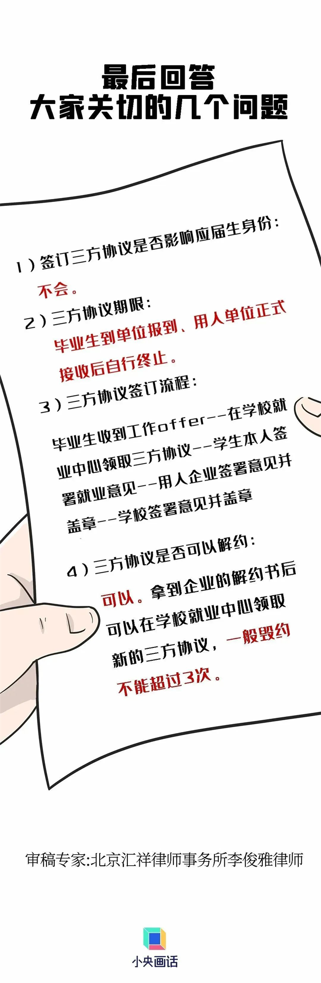 正值毕业季,“你找工作了吗?你找的工作怎么样?”成为了毕业生之间的问候常用语。但招聘信息铺天盖地,企业资质良莠不齐,一不注意就会有踩“坑”的可能。不签三方影响毕业、签三方后不再保有应届毕业生资格、违约要赔偿高额违约金、实习期可长达两年…各种谣言纷飞,今天就为大家一一破解,帮助毕业生在求职之路上成功避“坑”。