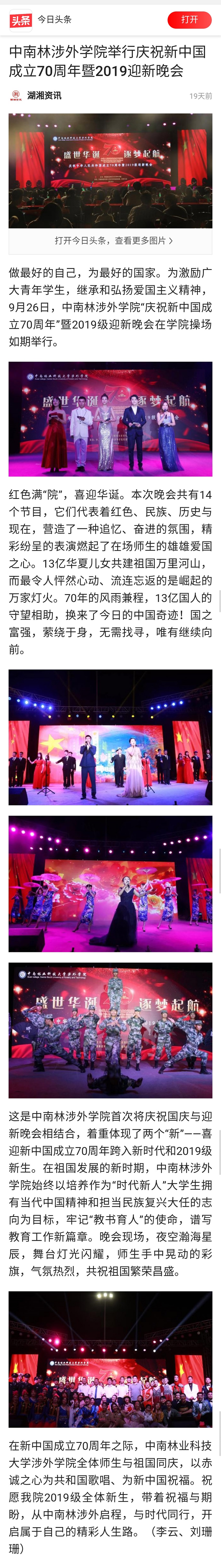 【搜狐新闻】中南林涉外学院举行庆祝新中国成立70周年暨2019迎新晚会