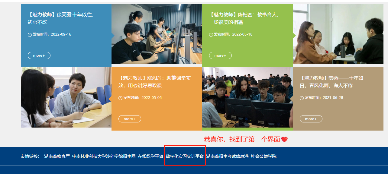 方法一:访问学院官网https://https-swxy-csuft-edu-cn-443.webvpn.csuft.edu.cn/,点击首页底端“数字化实习实训平台”栏目;