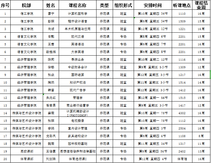 经各教学单位组织及推荐,共有60名老师进行示范课公开课讲课,具体安排见下表及附件。