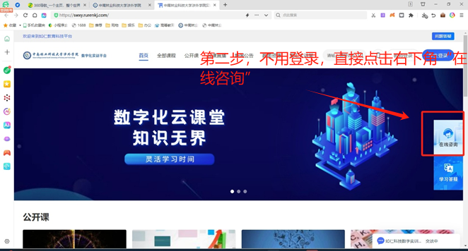 登录平台后,在页面右下角找到“在线咨询”按钮并点击。
