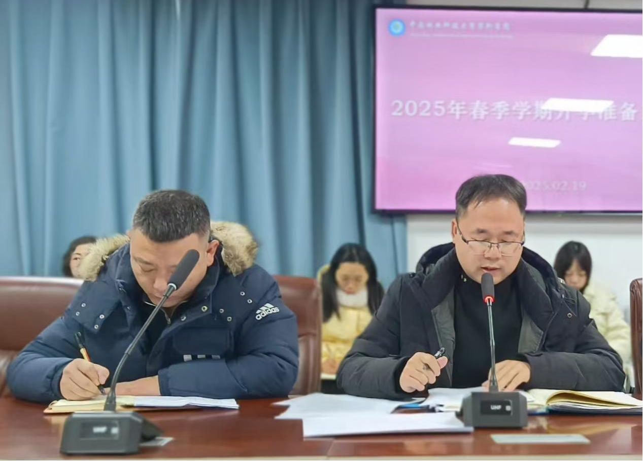 2月19日下午,教务处于行知楼视频会议室召开2025年春季学期开学教学工作会议,就新学期准备工作及教学工作进行安排和部署。各教学单位、图文信息中心、教学质量监控中心、学工处等相关部门负责人及教务处全体成员、各教学单位教学秘书、实验秘书参加会议,会议由学院院长周志宏主持。
