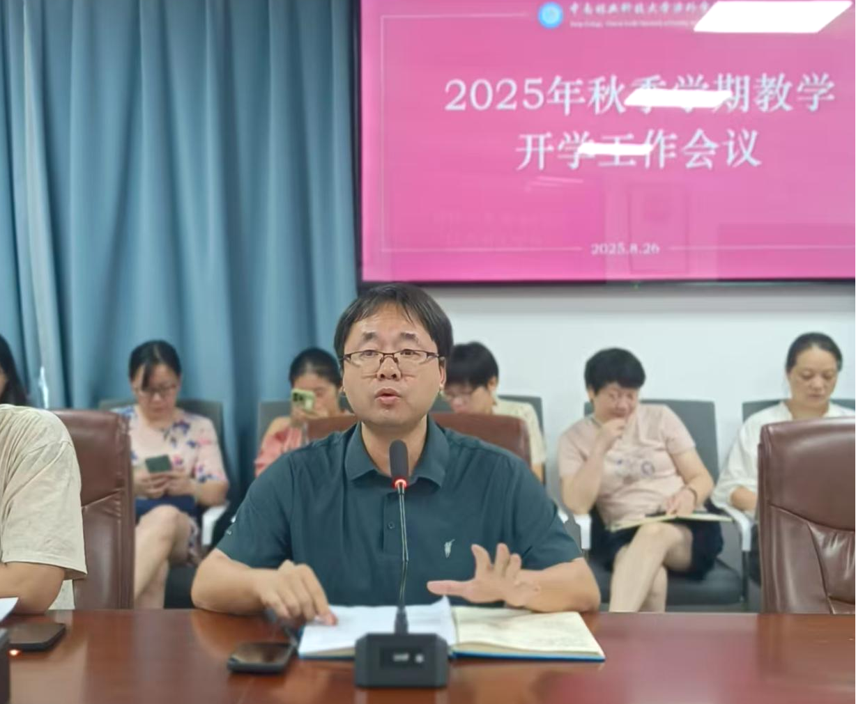 会上,教务处处长方东玉就开学准备工作进行汇报,对秋季学期教材征订和入库情况、开学教学检查、理论课程及课表编排、秋季学期补考、2025年教科研申报及结题、新专业申报工作以及关于开展庆祝第41个教师节暨第九次教学表彰活动等工作的具体安排和进度作细致说明。