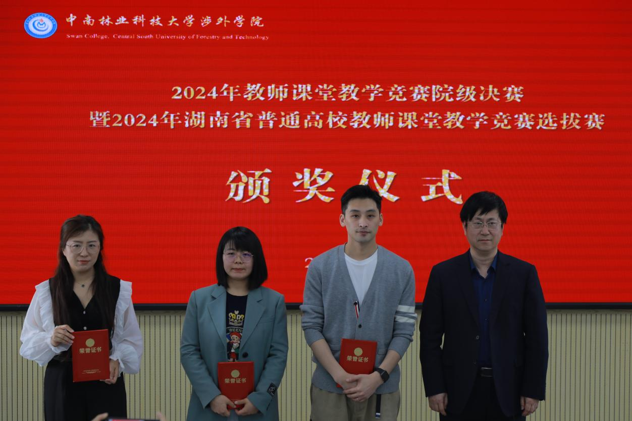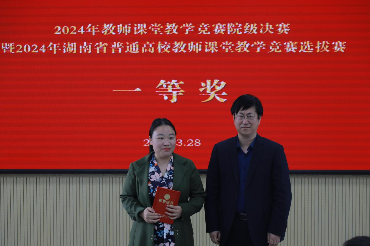 为进一步激发广大青年教师夯实教学基本功、引入教学新理念和新方法,切实提升课堂教学质量,3月28日下午,2024年湖南省普通高校教师课堂教学竞赛校内选拔赛在第一教学楼1210室举行。通过二级学院选拔的6位老师参加了本次比赛,展示了学院教师在课堂教学方面的成果和经验。本次比赛由学院教学指导委员会成员担任评委,教务处处长方东玉主持本次赛事。