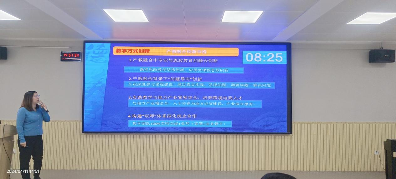 4月11日下午,学院2024年教师教学创新大赛产教融合赛道院级决赛暨2024年湖南省普通高校教师教学创新大赛产教融合赛道选拔赛在明德楼1210教室举行。通过二级学院选拔的3支参赛队伍参加了本次比赛,展示了学院教师在产教融合教学创新方面的成果和经验。本次比赛由学院教学指导委员会的部分成员担任评委,教务处处长方东玉主持本次赛事。