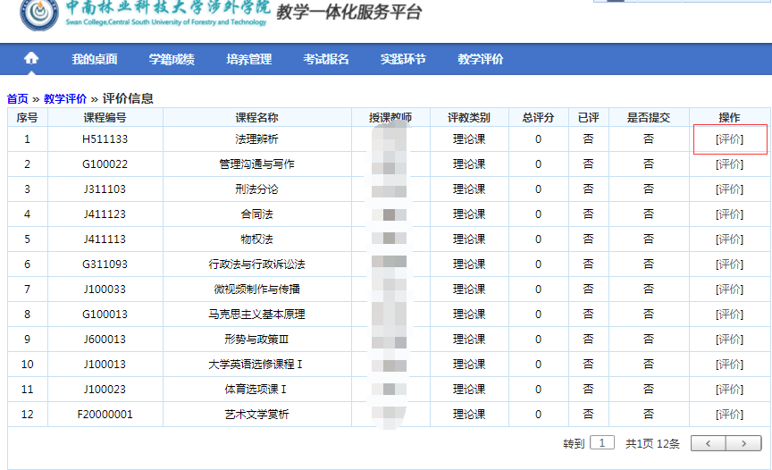 3.评价课程:所有课程(包括理论课、实验课以及实践教学环节)均要求在教务系统上进行评教。