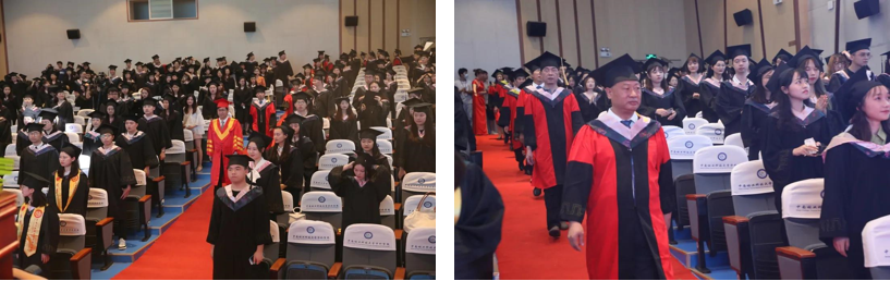 典礼伊始,主礼教授和导师代表身着导师服入场,全场起立恭迎,瞬时响起雷鸣般的掌声,现场气氛热烈。仪式在《中华人民共和国国歌》中拉开序幕,全体师生起立合唱国歌。