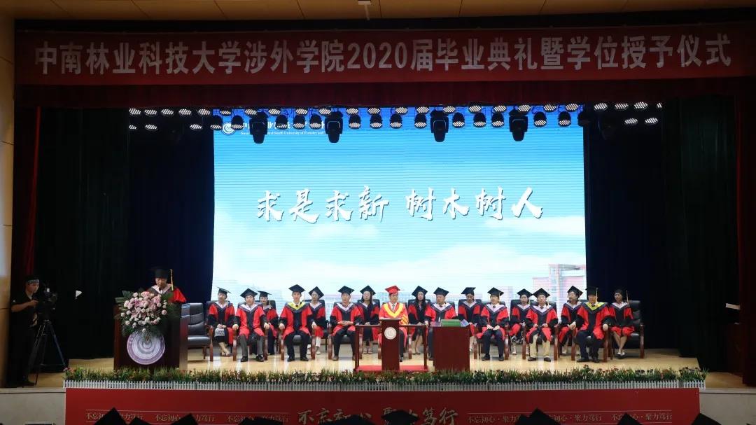 毕业生代表发言完毕后,副院长马宗艳宣读中南林业科技大学涉外学院《关于授予2020届毕业生学士学位的决定》、《关于表彰湖南省普通高等学校2020届优秀毕业生及退伍优秀毕业生的通报》,寄望全体涉外学子不断进步,追求卓越,勇攀高峰。