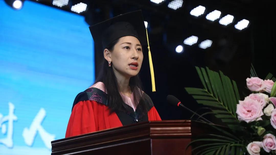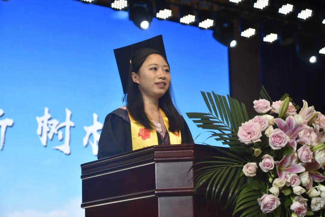 接着,教师代表高雪发言,她提炼了祝贺、感谢、叮嘱、祝福四个关键词,发言真情实感、深入人心,在场毕业生深受感动、备受鼓舞。春风得意马蹄疾,扬帆远航正合时,希望毕业生们不负青春韶华,不负伟大时代,在祖国需要的地方绽放最绚丽的青春风采。