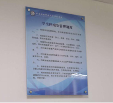 健全机制,完善制度。学生档案工作是学校档案工作的重要组成部分,自集团启动档案规范建设以来,学工处配备的档案专员在学校的统一指导下,认真学习集团和学校有关档案建设文件,不断提高档案管理水平,结合实际情况,建立健全《学生档案室管理制度》、《学生档案管理办法》等相关制度并上墙。