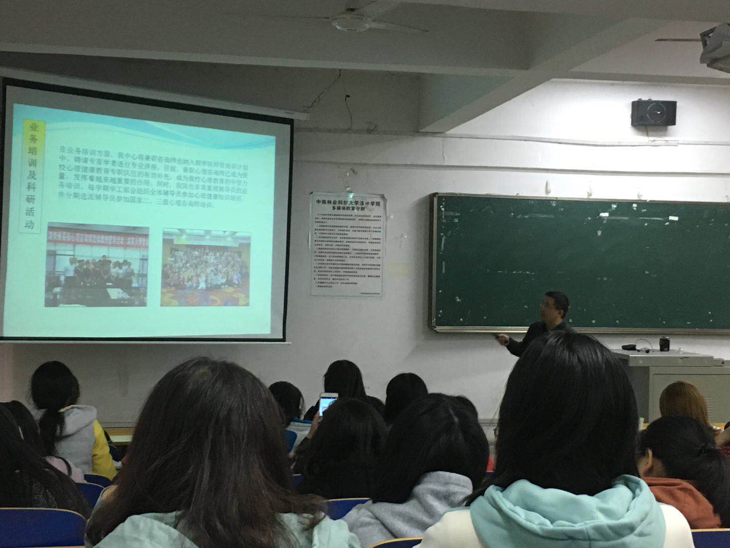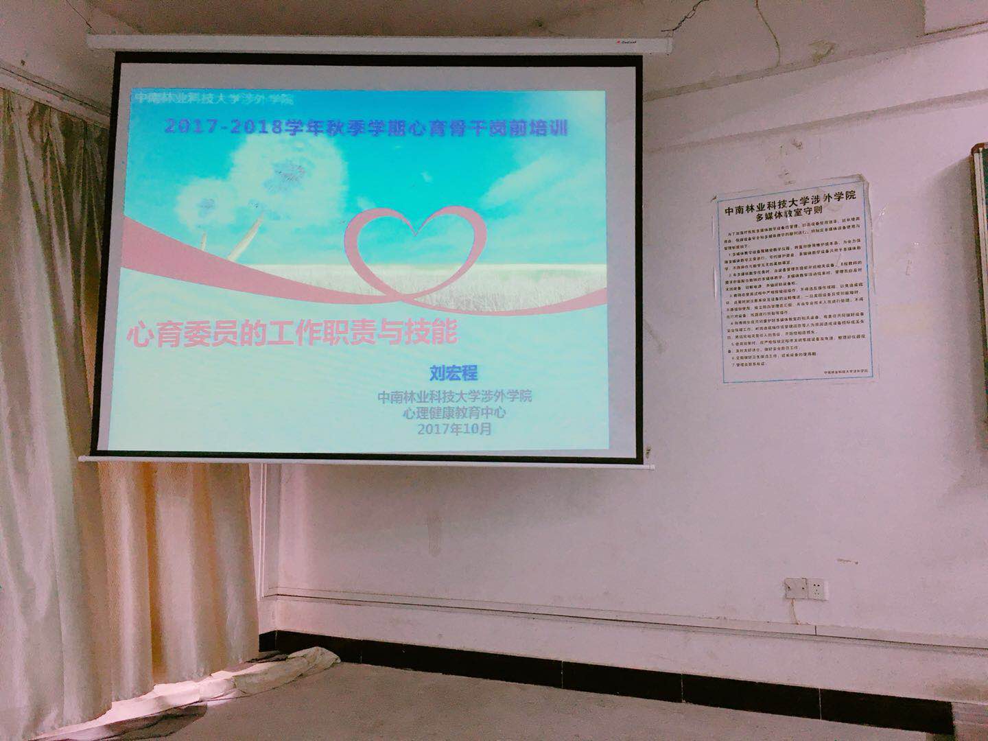 为充分发挥学生心育骨干在我院心理健康教育工作中的重要作用,打造积极主动、专业自信的学生心育骨干队伍,10月19日中午,我院2017-2018学年秋季学期心育骨干岗前培训暨2017级新生心育委员岗前培训在学院一教学楼1110顺利举行,来自2017级各班心育委员和心理部全体成员共计120余人共同参加了此次培训。本次培训由心理健康教育中心刘宏程老师主讲。