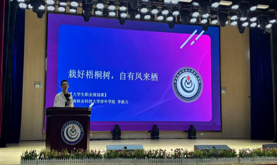 李添力老师以“栽好梧桐树,自有凤来栖”为主题,结合自身在香港理工大学、湖南师范大学的求学背景以及顺丰、字节跳动、vivo等企业的从业经历,从自我认知、行业趋势、职业路径三大维度展开分享。他鼓励同学们善用MBTI等工具进行职业定位,强调“早准备、早行动”,从大一开始积极积累实践经验,不断提升综合竞争力。