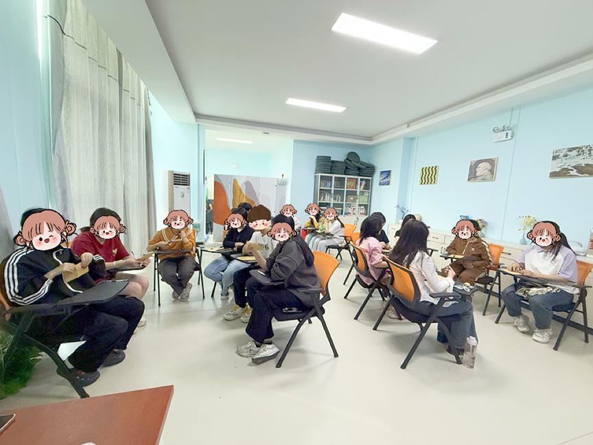 首回活动以"感知情绪,发现自我"为出发点,鲁浩雯老师开场以精心设计的"滚雪球"破冰游戏,帮助参与者快速建立团体联结。随后结合普拉切克情绪色彩轮和《头脑特工队2》的讲解,让参与者运用色彩和图案在艺术表达中完成自我情绪觉察,并通过"绘制情绪面具"环节,将自己的情绪具象化,探索自我情感,有效提升了情绪觉察能力。