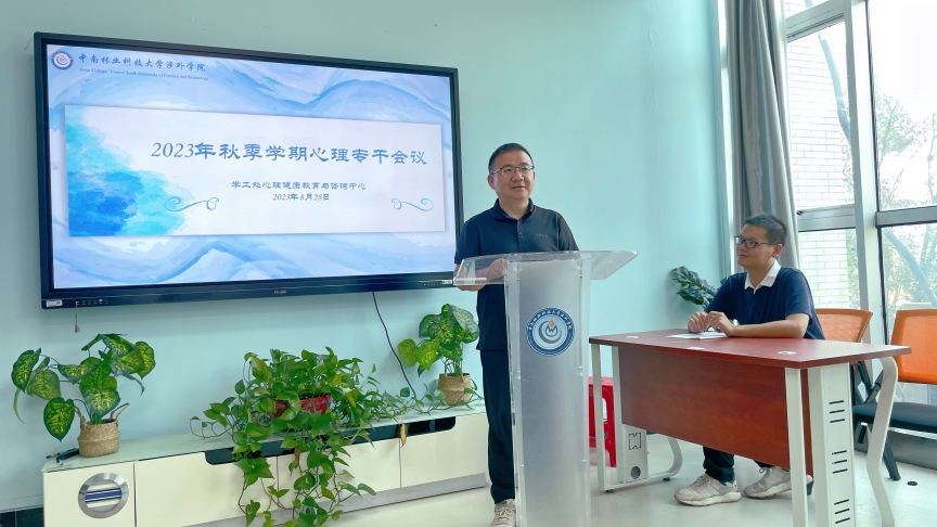 会上,心理中心王汪老师就做好2023年秋季开学期间心理健康教育工作,传达了本学期心理健康排查任务的工作要求,并强调要严格落实省教育厅指示,继续完善我院心理危机入库学生信息,进一步提高我院大学生心理危机干预工作的专业性,确保心理危机预警和干预机制规范有效运转。同时,王汪老师指出应密切关注学生身心动态,并重点就新生入学期间心理健康教育工作处理要点做详细介绍。