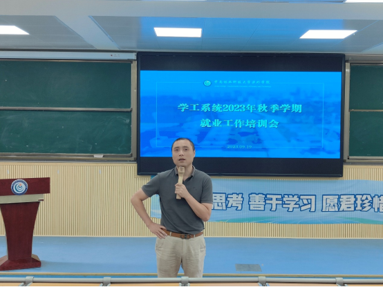 学工系统2023年秋季学期就业工作培训会于9月19日在一教楼1310顺利举办,创业就业指导中心老师,全体辅导员参加会议,会议由学工处任晟圣老师主持。