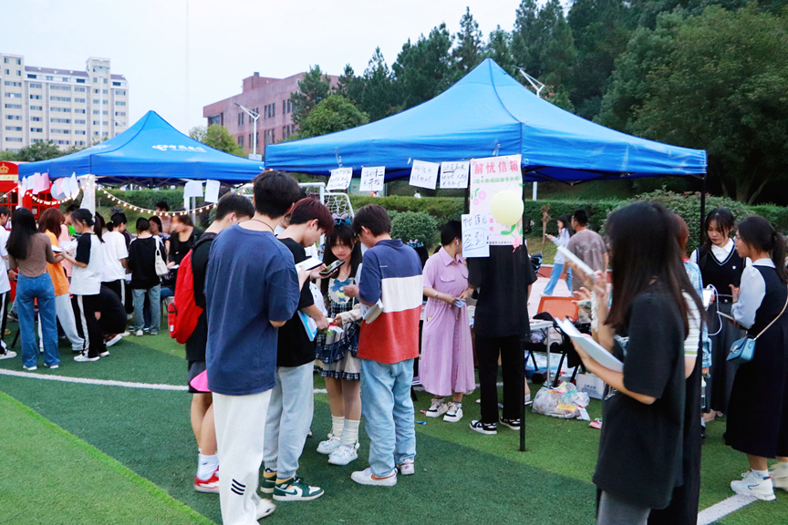 本次活动形式多元、内容丰富。经典的心理学实验科普活动“假手实验”和“动起来的心理效应”让人体会新奇、刷新认知;趣味性测验类活动“森林奇遇”、“菲尔性格测试”和“雨中人绘画”,让同学们了解自身当下最真实的状态,认识自我,明确自我意识;情绪体验类活动“解忧信箱”、“一帧图让自己懂得释怀”、“跟所有的烦恼说拜拜”,通过情绪传递中的感知体悟与倾诉过程中的自我疏导,使自己释放情绪张力,恢复内心平和;互动协作类活动“信任盲行”让同学们在团队合作中感受互相信任、团结协作的重要性,在互动中增强对他人的理解、信任和接纳。