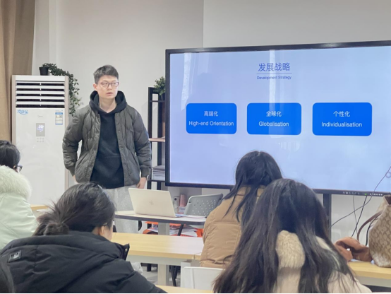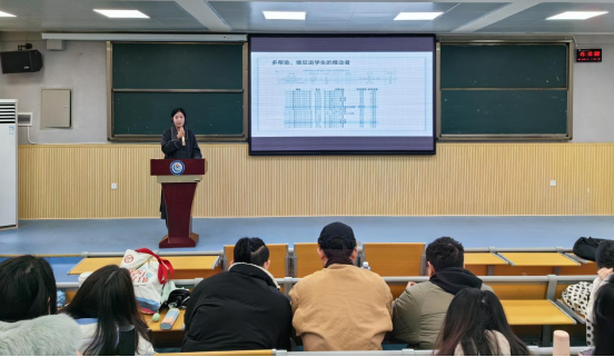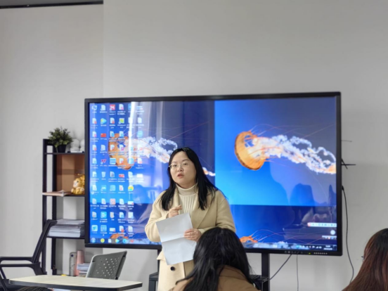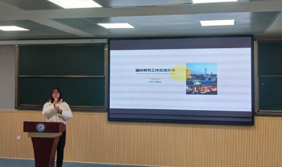 管理学院分团委书记吴姣姣老师就国际教育工作进行交流分享,提出要“想学生之所想,爱学生之所爱”,做好师生关系日常维护,共创国际化氛围。