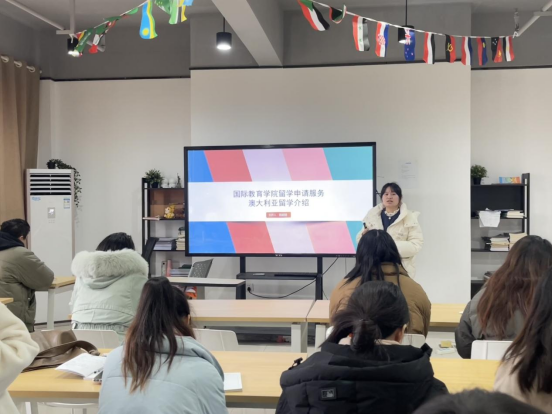 国际学院易颖湘和张梓杨老师采用图文结合的形式详细介绍了留学申请服务、研学项目、导师工作以及澳洲和英国留学具体内容。