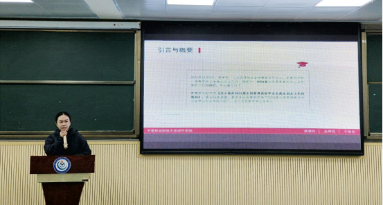 就业指导中心李依楠老师介绍了就业工作的基本知识,强调“四不准”的重要性,提出在开展就业工作时要建立就业信息台账,积极发布就业信息,召开就业动员分享会,实行困难帮扶,完善精准帮扶机制,针对各年级学生制定个性化就业指导。