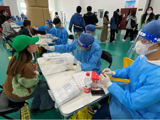 现场秩序维护、监督扫码登记、发放核酸拭子,入党积极分子志愿者们尽己所能为每一位前来检测的师生保驾护航,确保了核酸检测工作的安全、有序、高效进行。