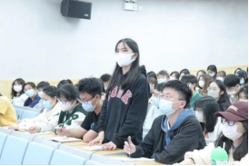 同学们聚精会神听课、积极参与互动。在此次党课最后,院长助理刘诗福与培训班全体成员一同朗读了“当代大学生该怎样践行社会主义核心价值观”这一课件内容。鼓舞大家要为中华民族的伟大复兴而奋斗,要在“德、智、体、美、劳”五方面下足功夫,用实际行动践行好社会主义核心价值观,做社会主义核心价值观的坚定信仰者、积极传播者、模范践行者。