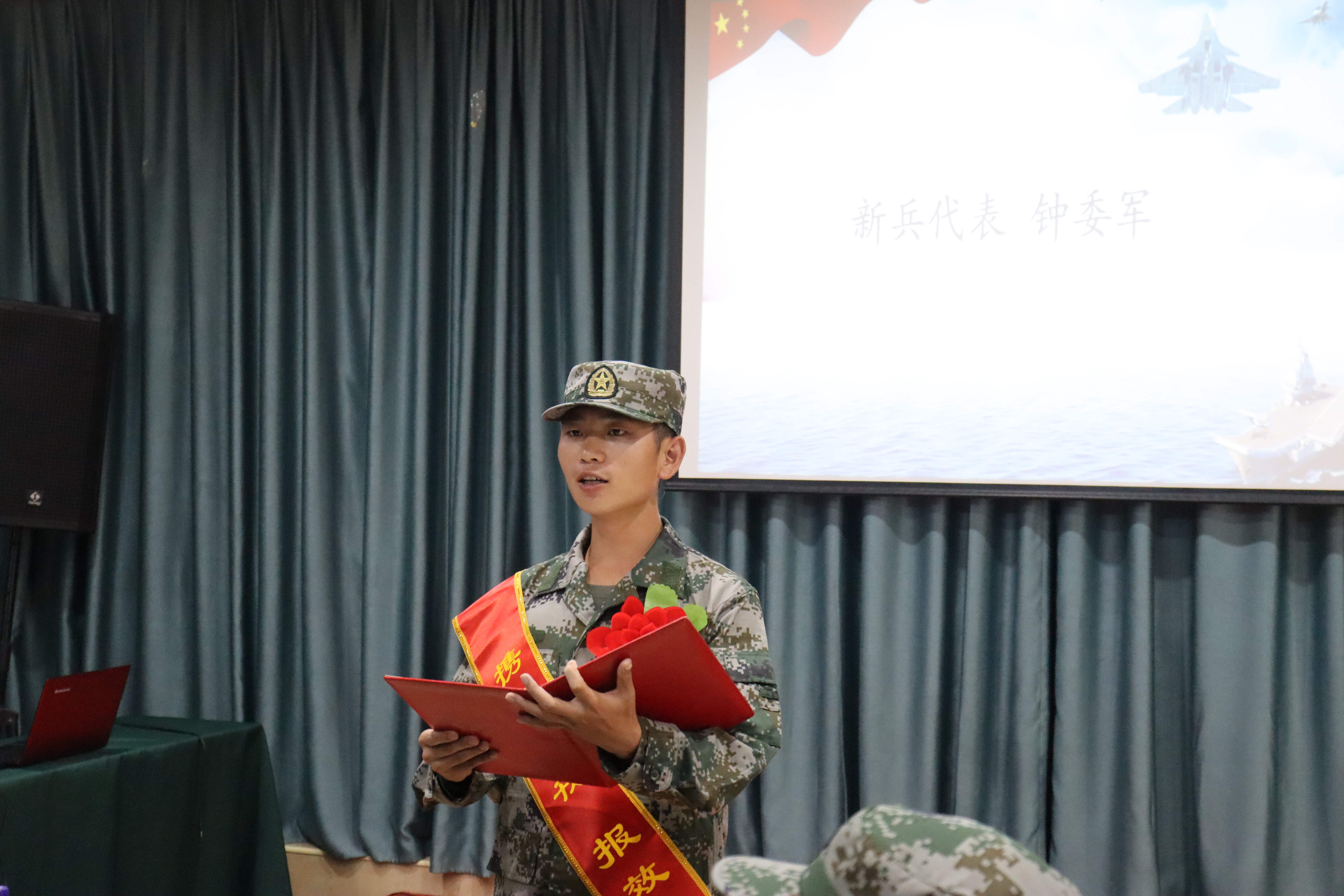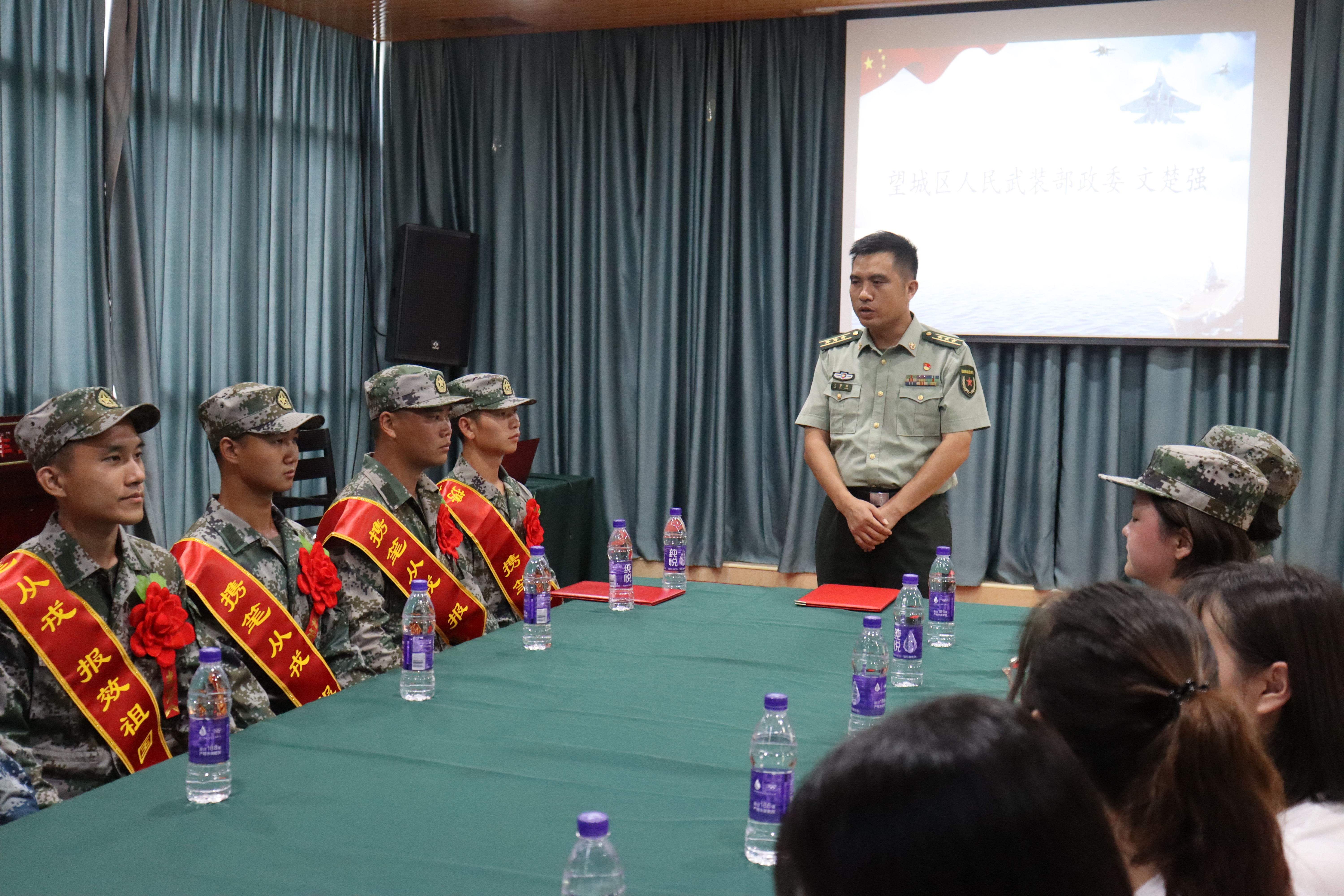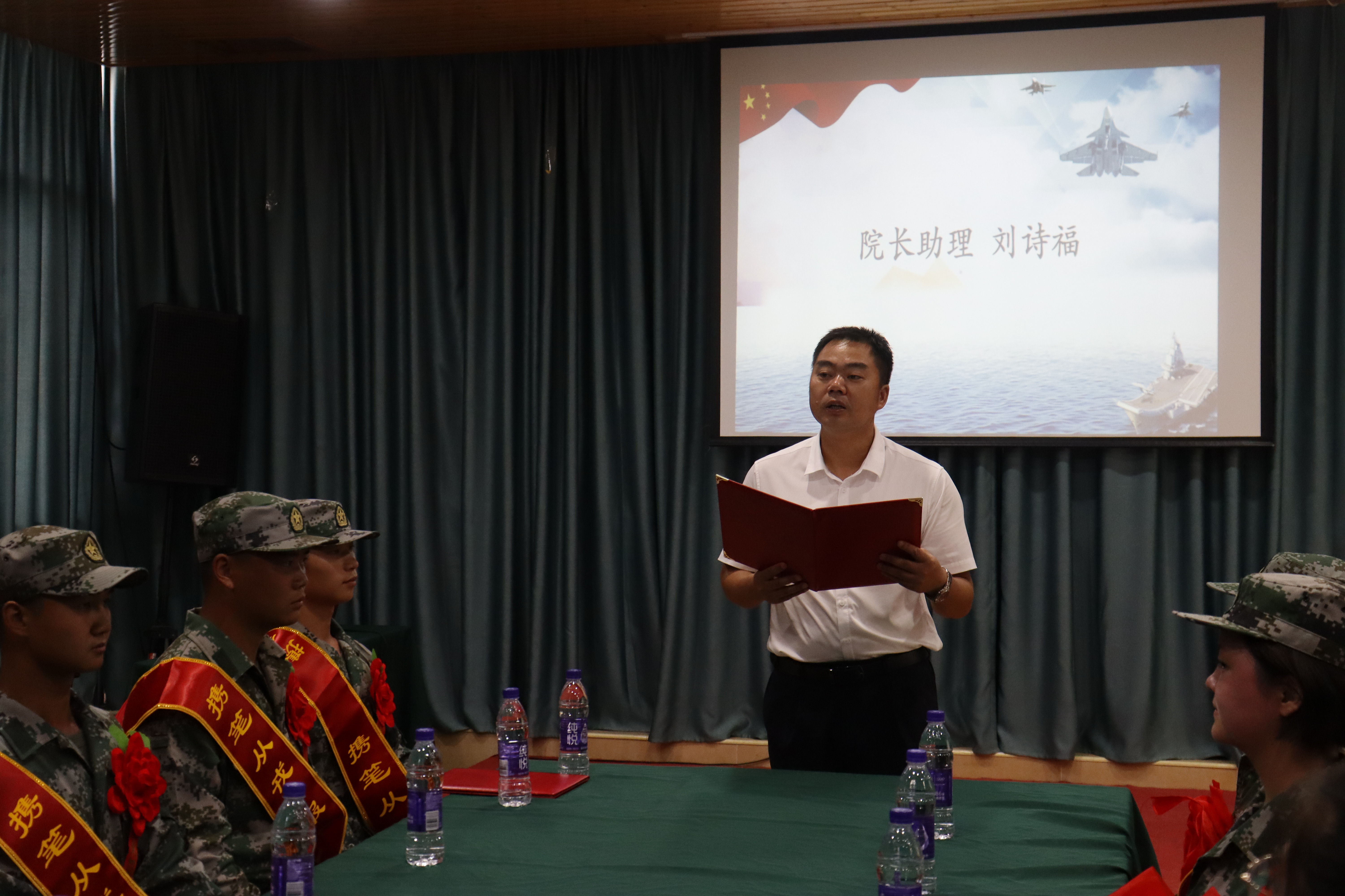 齐程程首先对与会的领导、老师和同学表示欢迎,对9名光荣入伍的大学生新兵表示热烈祝贺。她指出,在今年新冠肺炎疫情多点散发的特殊背景下,我院钟委军等9名同学依照中华人民共和国兵役法规定,积极应征,光荣的被批准服现役,体现了高度的思想觉悟和极大的爱国热情。接着,她郑重庄严宣读9名入伍同学名单,现场响起热烈的掌声。