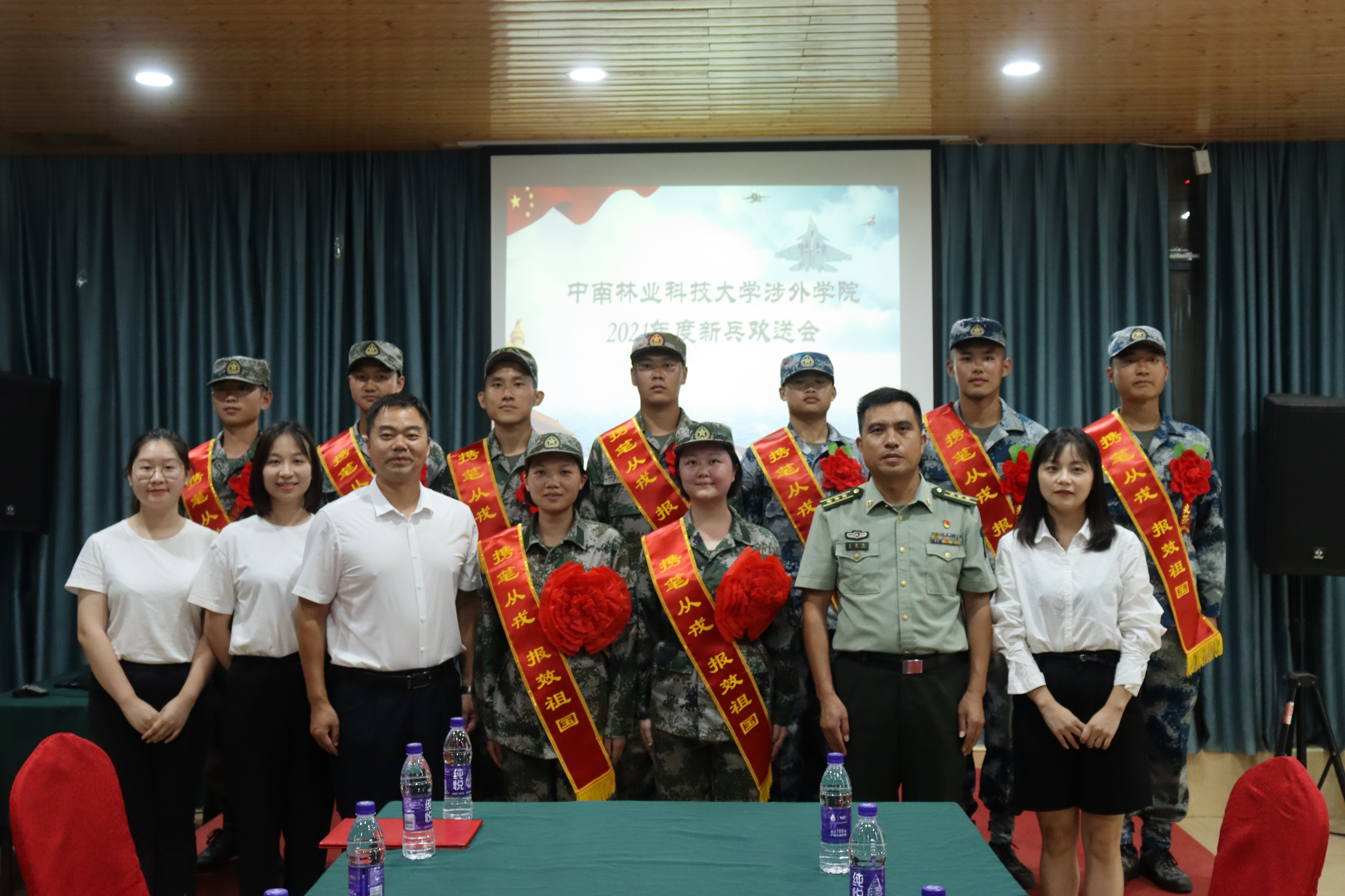 9月15日,中南林业科技大学涉外学院2021年新兵入伍欢送会在望城区役前训练基地隆重举行,望城区人民武装部政委文楚强、中南林业科技大学涉外学院院长助理刘诗福、学工处副处长齐程程、学工处甘葳凝、任理参加此次欢送会,为我院2021年秋季应征入伍大学生送行。