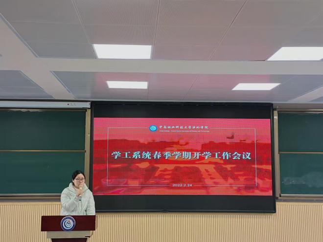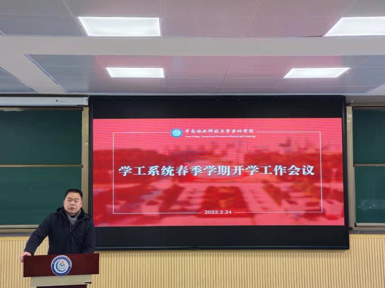 2022年2月24日上午,学工系统全体人员在一教学楼1310会议室召开学工系统2022年春季学期开学工作会议。院长助理刘诗福、各二级学院党总支书记和学工系统全体人员参加会议,会议由学工处副处长徐婷主持。