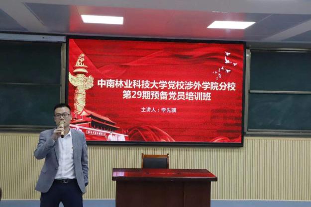 建党100周年来临之际,中南林业科技大学党校涉外学院分党校于2021年5月20日在1310报告厅举办了一场以“学史增信,知史爱国,铸灵魂,守初心,担使命”为主题的党史专题教育培训。长沙市望城区翻身垸村区派第一书记张亚飞和党总支组织委员兼第一支部书记周红宇到场观摩,我院第29期预备党员培训班全体学员参加了此次培训。