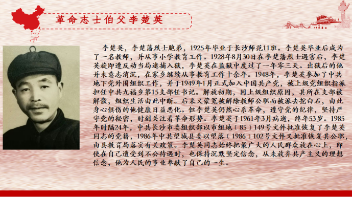 李老以朴实的话语,通过对100年前后的中国状况对比,生动讲述了百年来中国共产党带领全国人民如何将我们的国家从一个民不聊生的弱国蜕变成如今欣欣向荣的强国。李老带领全体学员重温“红船精神”,“长征精神”,“延安精神”,“井冈山精神”,“雷锋精神”,让大家对如何成为一个合格的党员有了一个全新的认识。李老还讲述了其伯父——革命烈士李楚藩和革命壮士李楚英,以及其父亲李楚琳的革命英雄事迹,叮嘱我们青年人要珍惜现在的美好生活,坚定崇高的理想信念,传承红色基因,赓续红色精神,学史明理,学史增信,为中华民族的伟大复兴而努力奋斗。