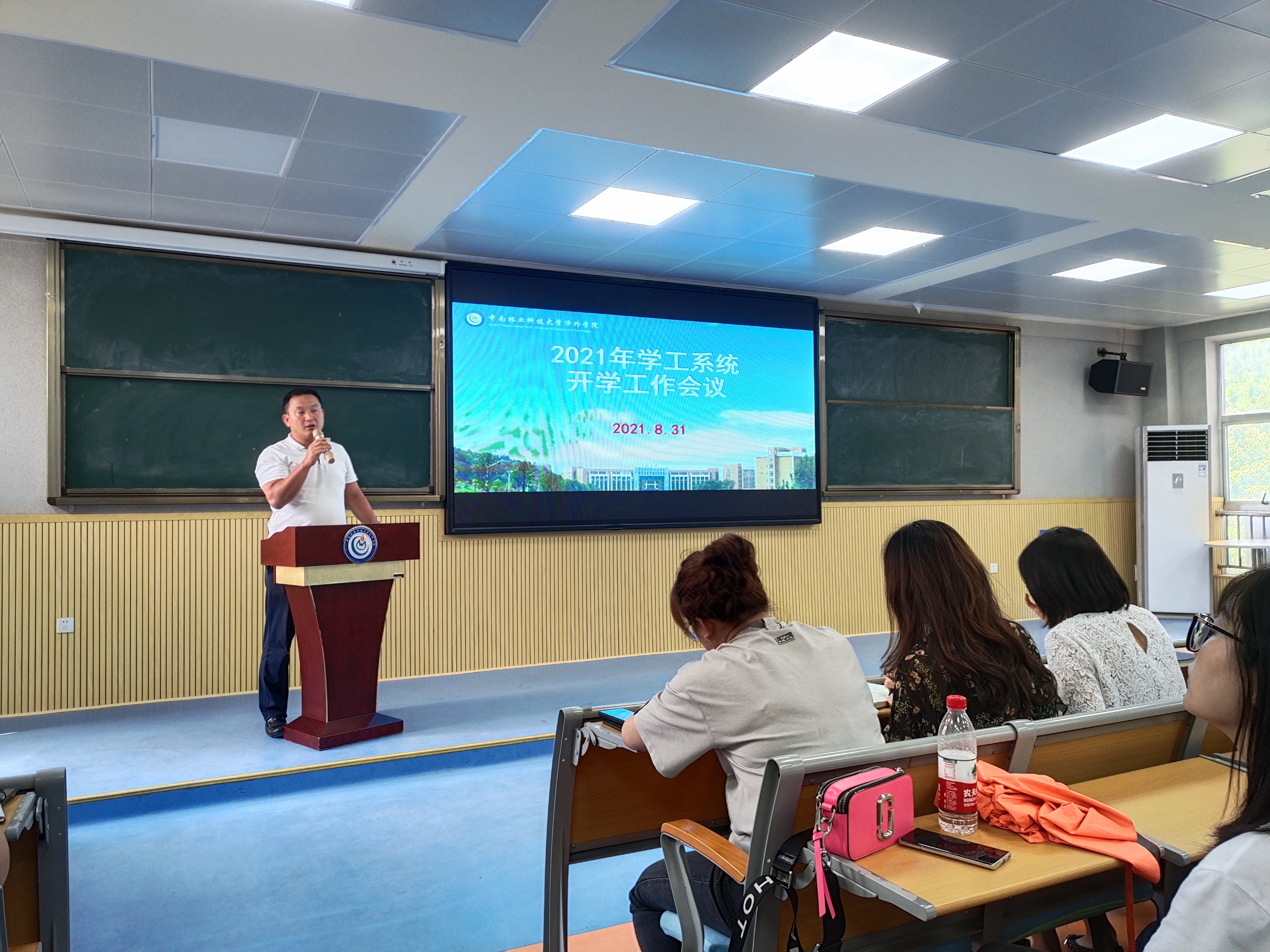 8月31号下午,中南林业科技大学涉外学院学工系统2021年秋季学期开学工作会在一教学楼1310召开。各二级学院党总支书记、辅导员、学工处全体成员参加会议;学院领导孟志波、刘诗福莅临指导。会议由学工处负责人徐婷主持。
