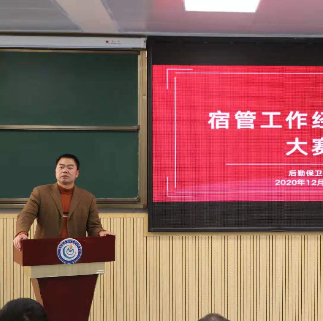 为了提高学院宿管员队伍的整体服务质量,打造一支高效率高素质高水平的的公寓管理队伍。我校于2020年12月25日在1310教室举行宿管工作经验分享大赛。本次活动特邀院长助理刘诗福、后勤处副处长杨国梁、后勤处保卫部门负责人徐建兵、后勤处主管胡成才、后勤处主管朱一村、学工处综合事务主管甘叶青、东城物业董事长胡泽琪、东城物业经理田敬东出席本次大赛并担任评委与嘉宾。