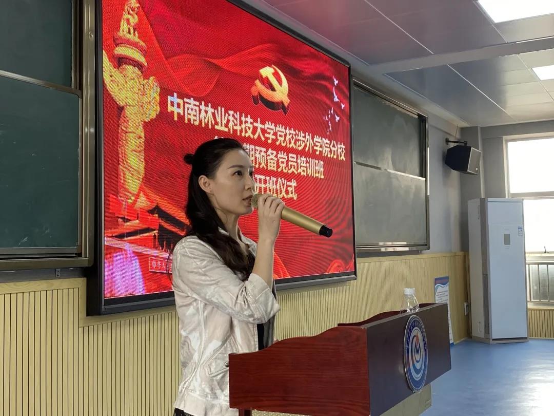 仪式第一项,班主任蒋文艳老师宣布中南林业科技大学党校涉外学院分校第28期预备党员培训班开班仪式正式开始。