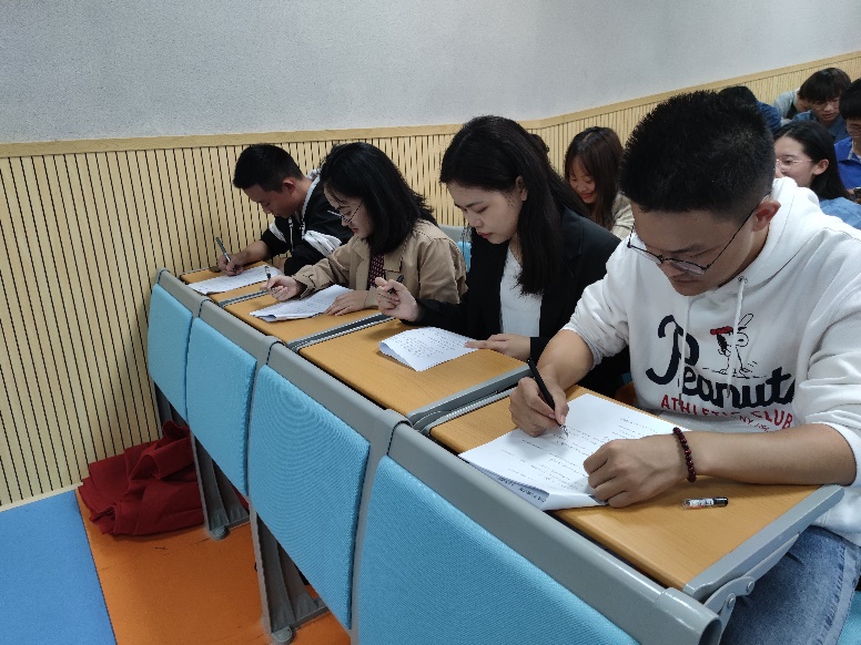 会前,首先进行反诈骗试题测评,全体与会学生积极思考,认真答题。