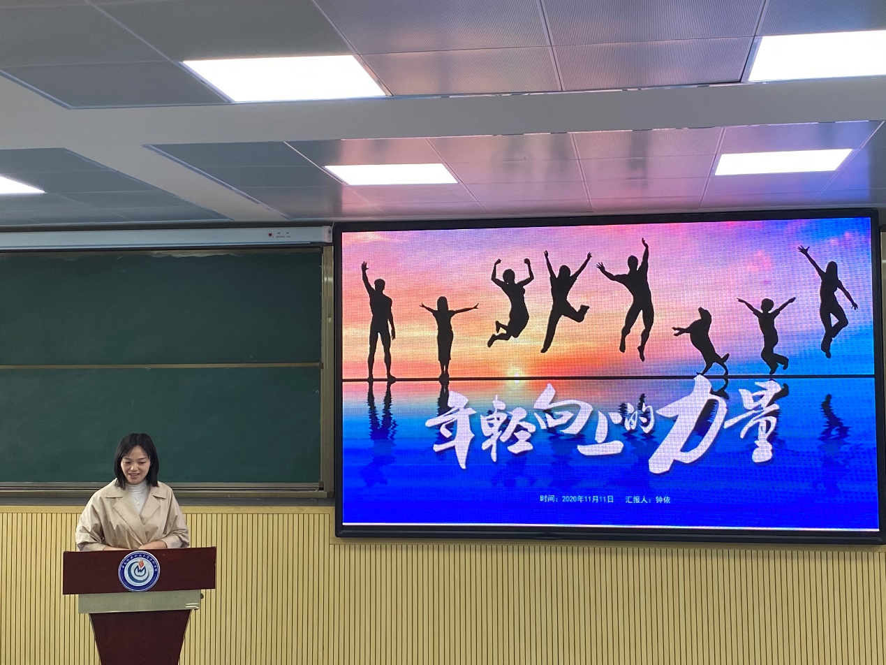 随后钟依老师以“年轻向上的力量”为题,从政治素养、工匠精神、职业认同、个人魅力四个方面进行了分享交流。钟依老师表示,我院带班辅导员45名,平均年龄28岁,是一支非常年轻、有力量的辅导员队伍,全体辅导员应该落实立德树人的根本任务,牢记为大学“立魂”的使命,不断提高自身政治素养,加强理论学习,增强职业认同,提升个人魅力,切实做好学生管理工作。